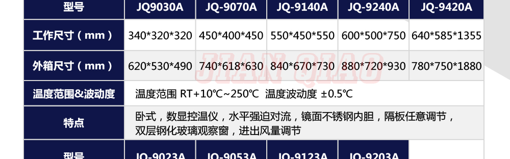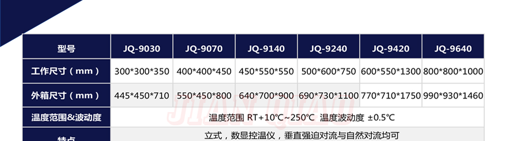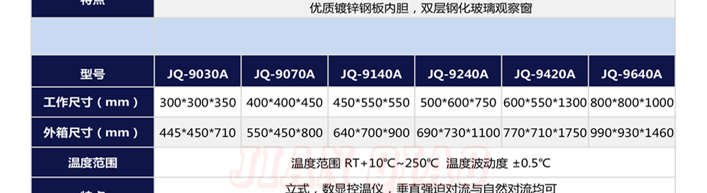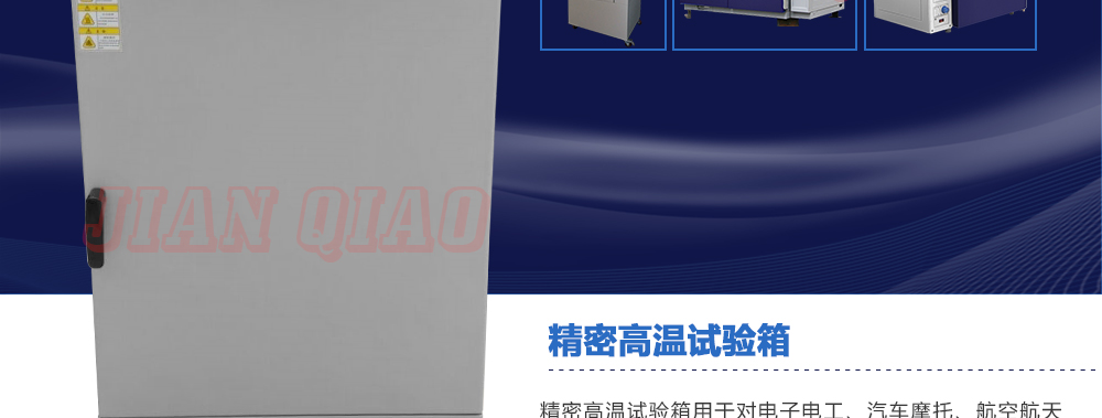 產(chǎn)品型號:JQ-9030 品牌:劍 喬 用途:精密高溫試驗(yàn)箱用于對電子電工、汽車摩托、航空航天、橡膠、塑膠、金屬、船舶兵器、高等院校、科研單位等相關(guān)產(chǎn)品的零部件及材料在高溫恒溫變化的情況下,檢驗(yàn)其各項(xiàng)性能指標(biāo)咨詢熱線:13829135130